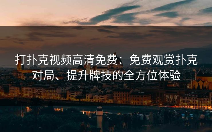 打扑克视频高清免费:免费观赏扑克对局、提升牌技的全方位体验