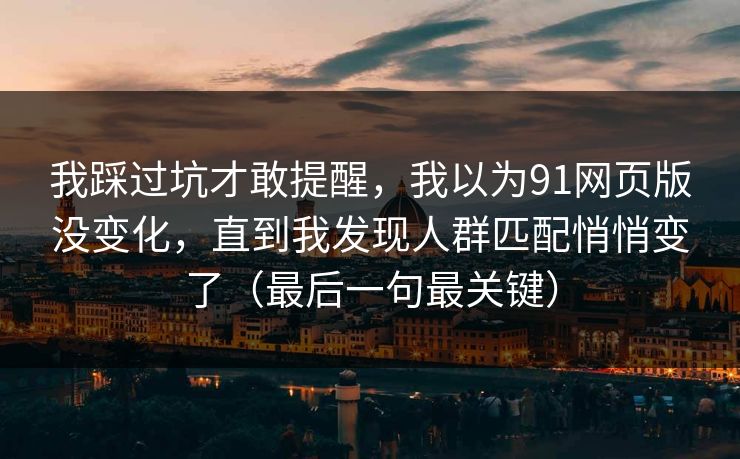 我踩过坑才敢提醒:起初我以为91网页版没变,直到我发现人群匹配悄悄变了(最后一句最关键)